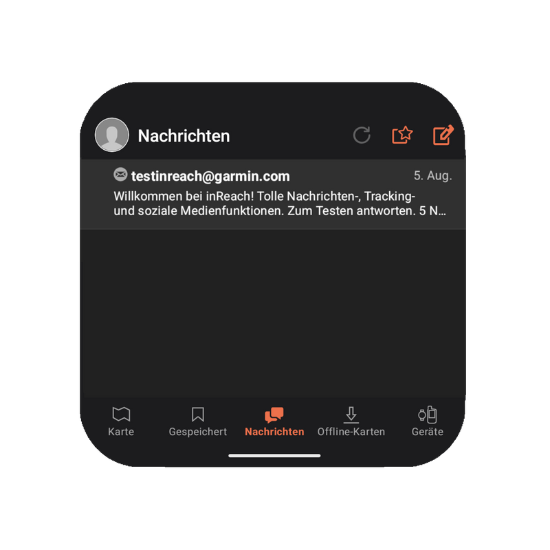 Nachrichten schreiben: Öffne den "Nachrichten"-Reiter in der Garmin Explore App. Hier kannst Du wie in einem normalen Messenger-Programm Nachrichten verfassen und an E-Mail-Adressen oder Handynummern senden.